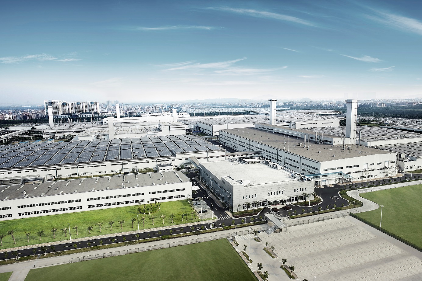环保、高品质的工厂。第三工厂导入业内规模最大的17MW分布式光伏发电项目,该项目年发电能力1900万千瓦时,相当于1万个家庭一年的用电量,光伏发电项目的应用,还实现了有效遮挡紫外线,延长厂房屋顶PVC(聚氯乙烯)卷材的寿命,降低厂房温度,从而降低空调使用量、间接节约电能等“隐性收益”。同时,第三工厂延续增城工厂的对外废水零排放,可满足目前国家对废水处理的更高要求,并达到全球最严格的VOC(可挥发性有机化合物)排放标准,实现世界领先水平。